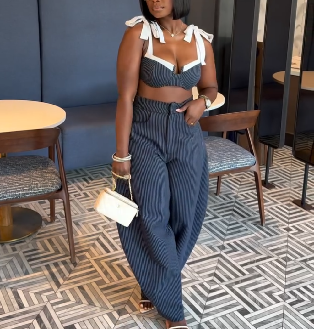 Red Pinstripe Contrast Collar Cutout Suit Set