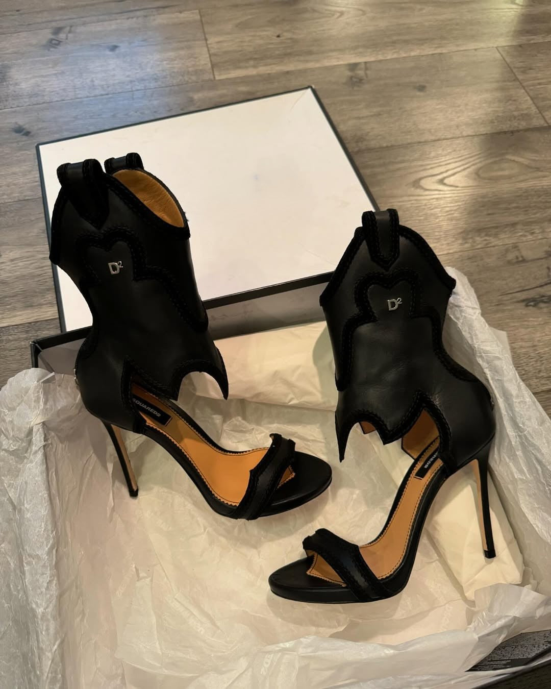 Black leather western heels