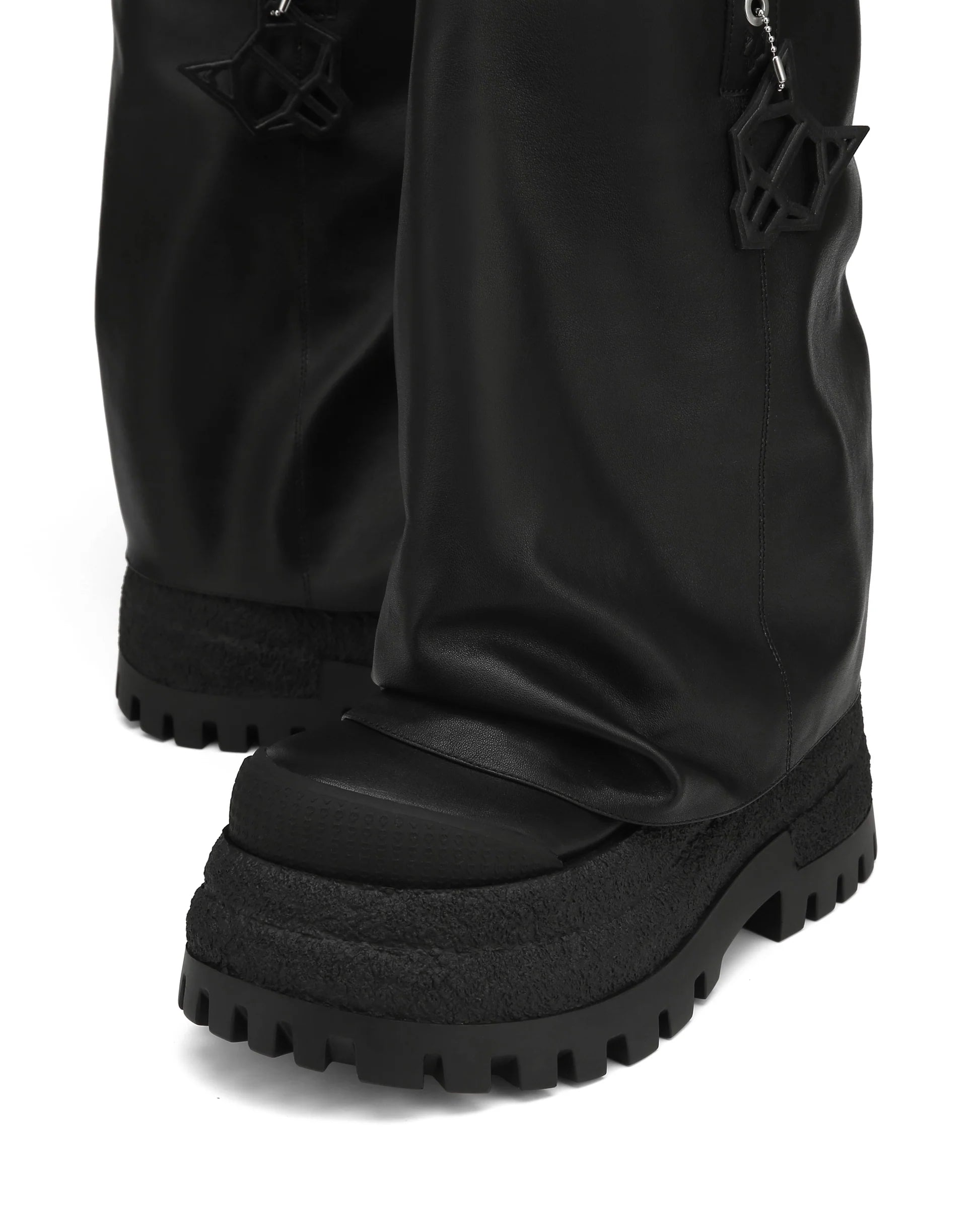 Introducing our latest 90mm platform boots, featuring an asymmetrical toe design, perfect for those who make a bold fashion statement. These boots feature a wide shaft for comfort and style, adorned with a unique ball header charm for added style. They also feature a new rubber toe and heel for durability and a modern aesthetic. Perfect for those seeking a sleek and elegant look, these boots are a must-have for any fashion-forward wardrobe.