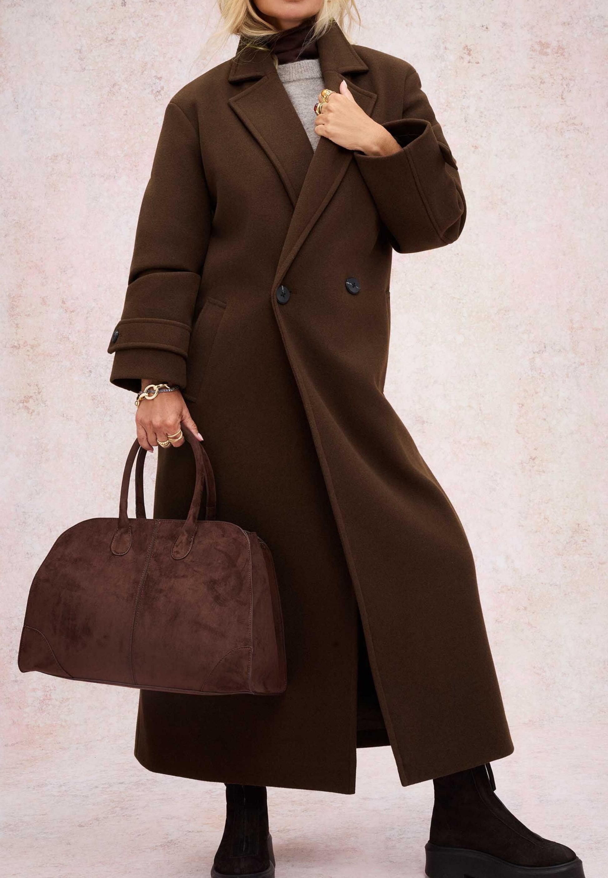 Chocolate Brown Double - Breasted Maxi Wool Coat