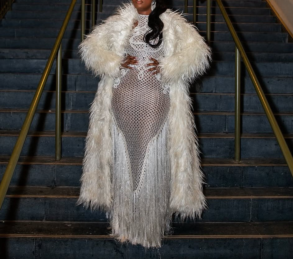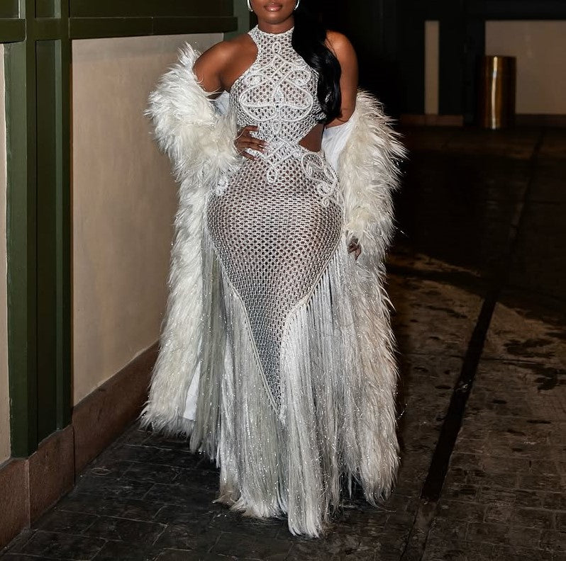 Embroidered hollow sleeveless tassel dress