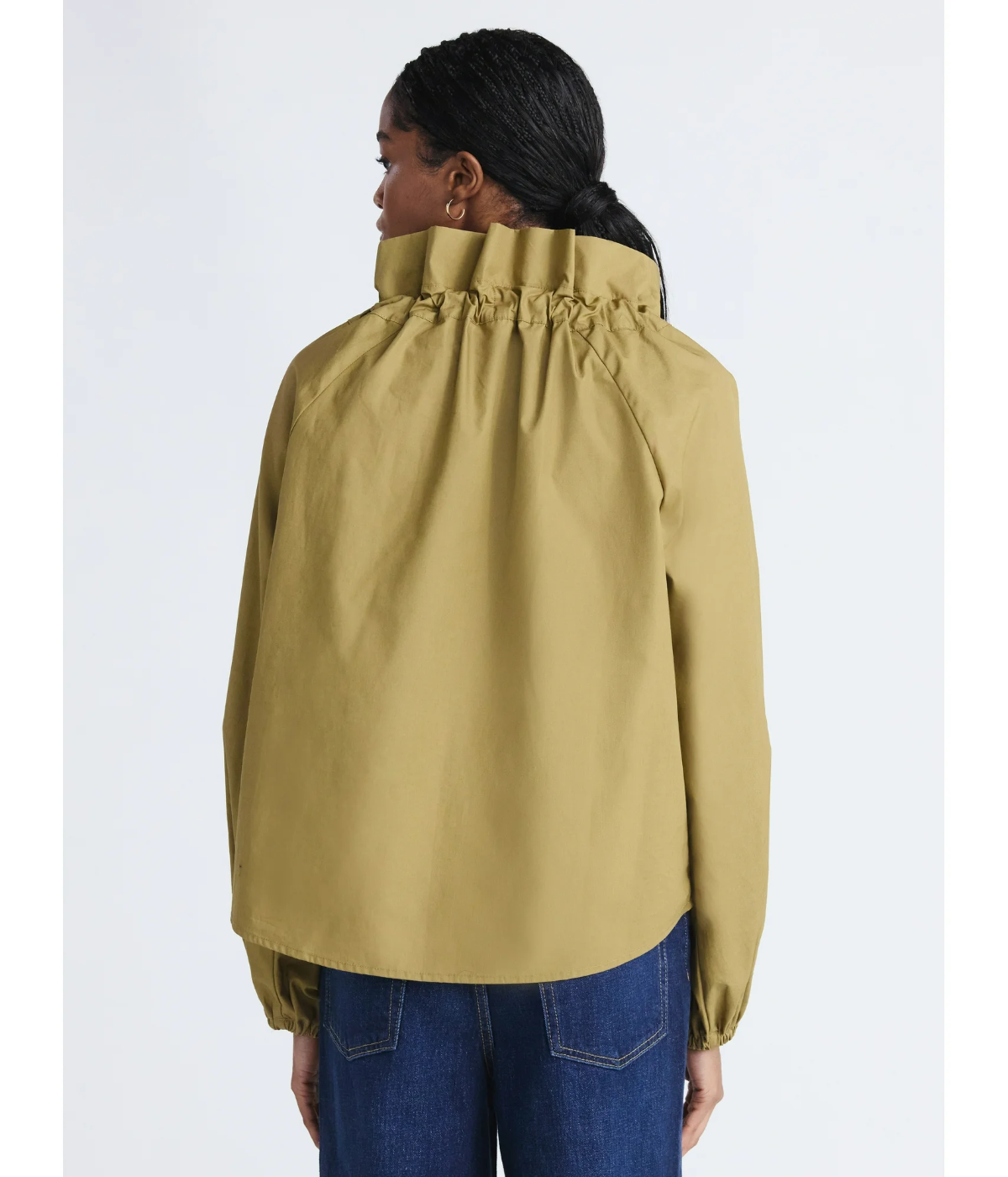 - Sleeves: Long balloon sleeves with elasticized cuffs