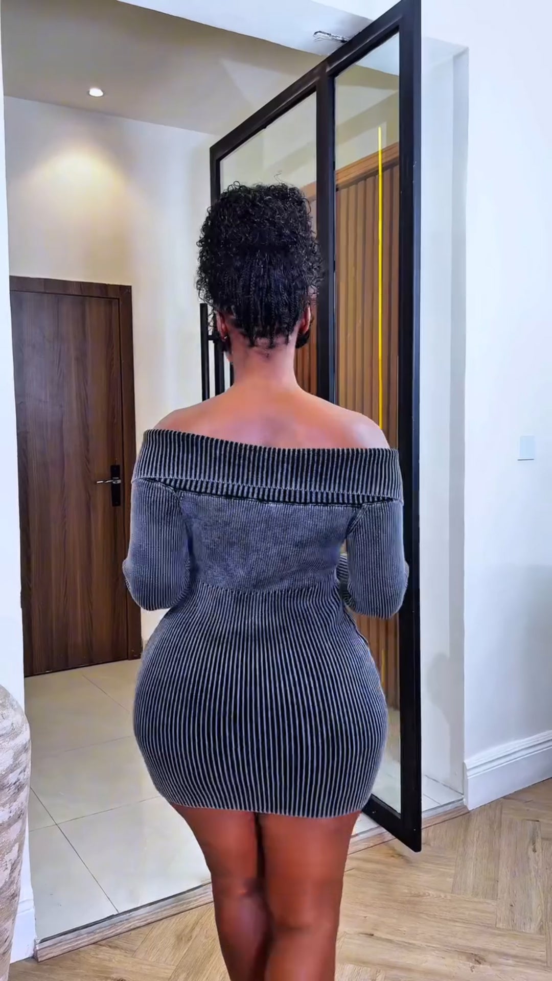Knitted drawstring mini dress
