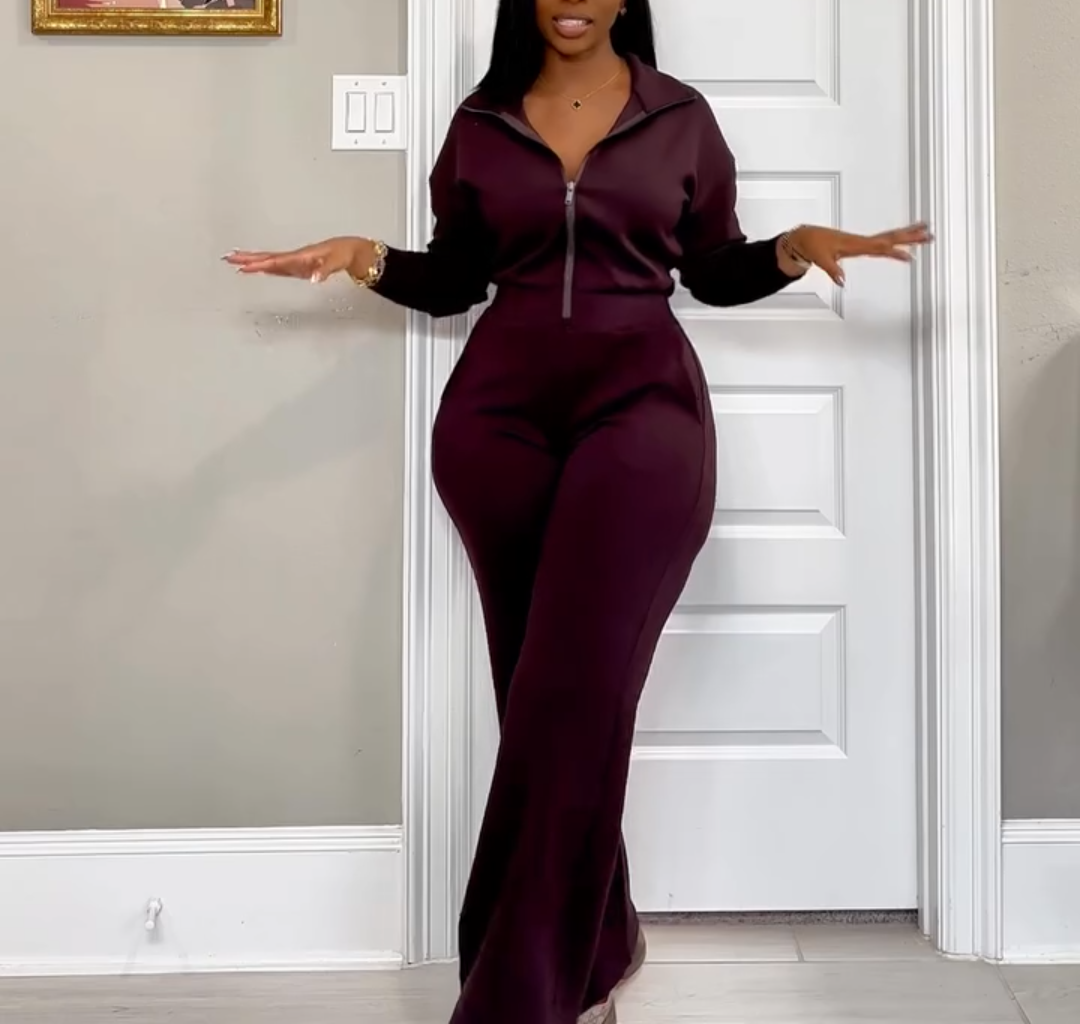 Leisure Sports Zipper Long Sleeve Jumpsuit