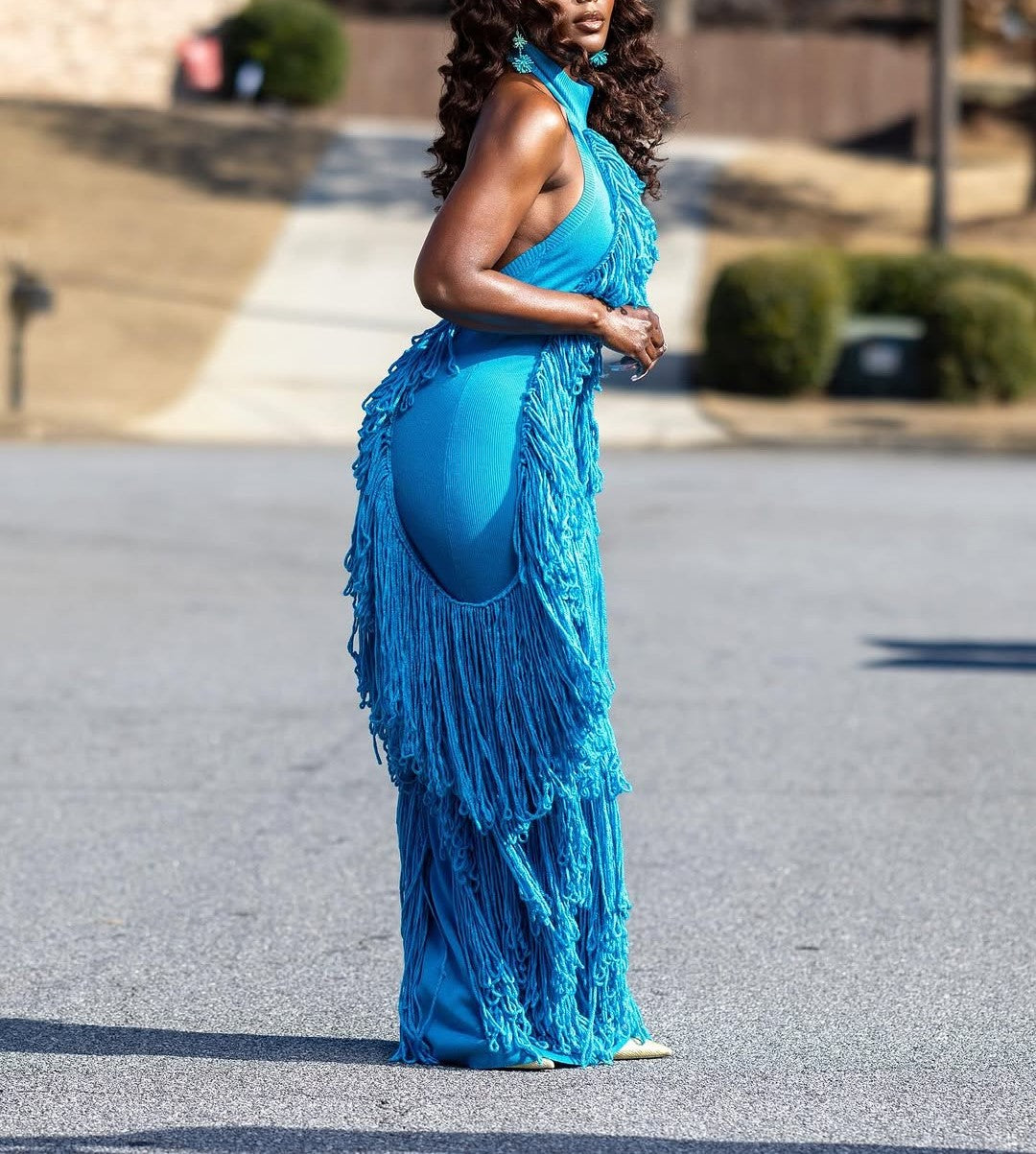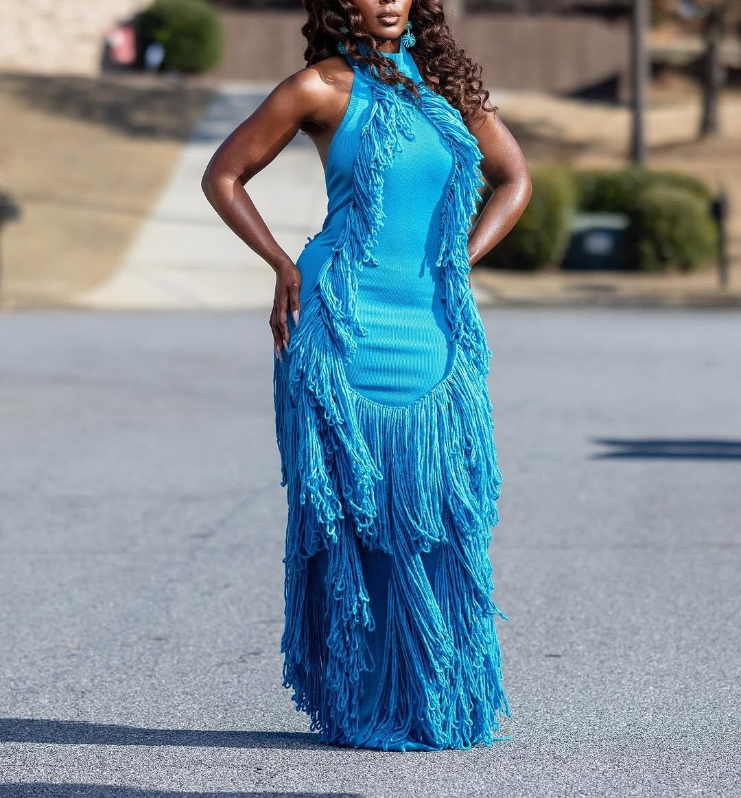 Absolutely irresistible, Mina is the gown of the season. With tassels strategically outlining your curves, this garment makes a statement — beautifully. Ideal for a celebration or in the tropics, Mina is one of a kind.