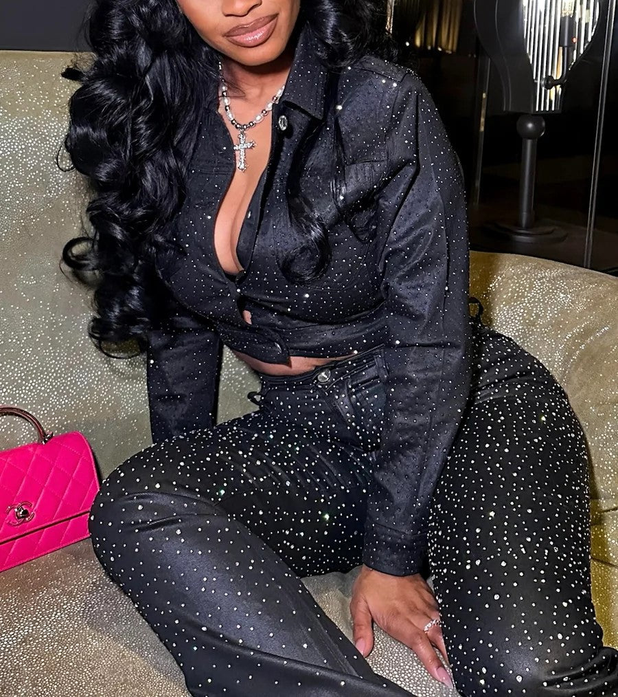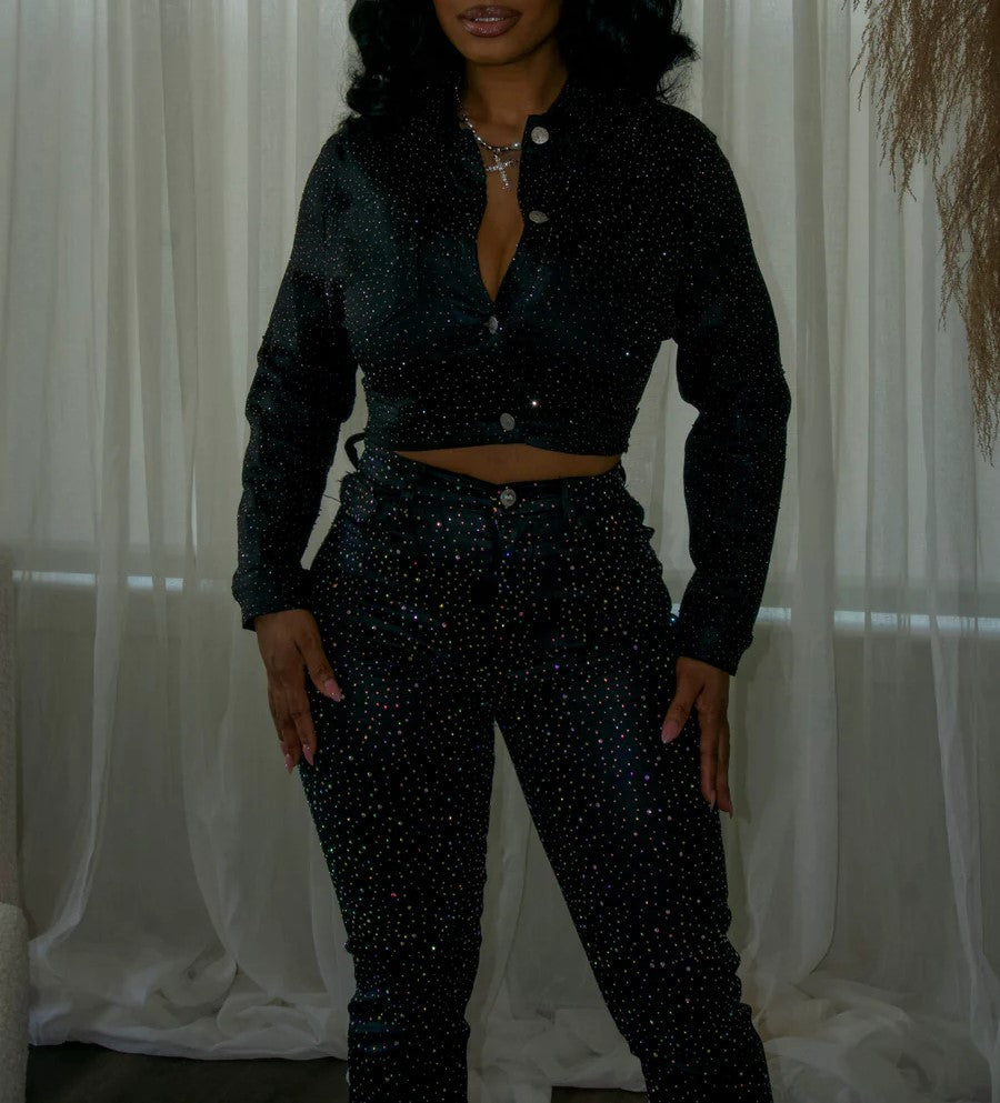 Rhinestone glitter denim jacket
