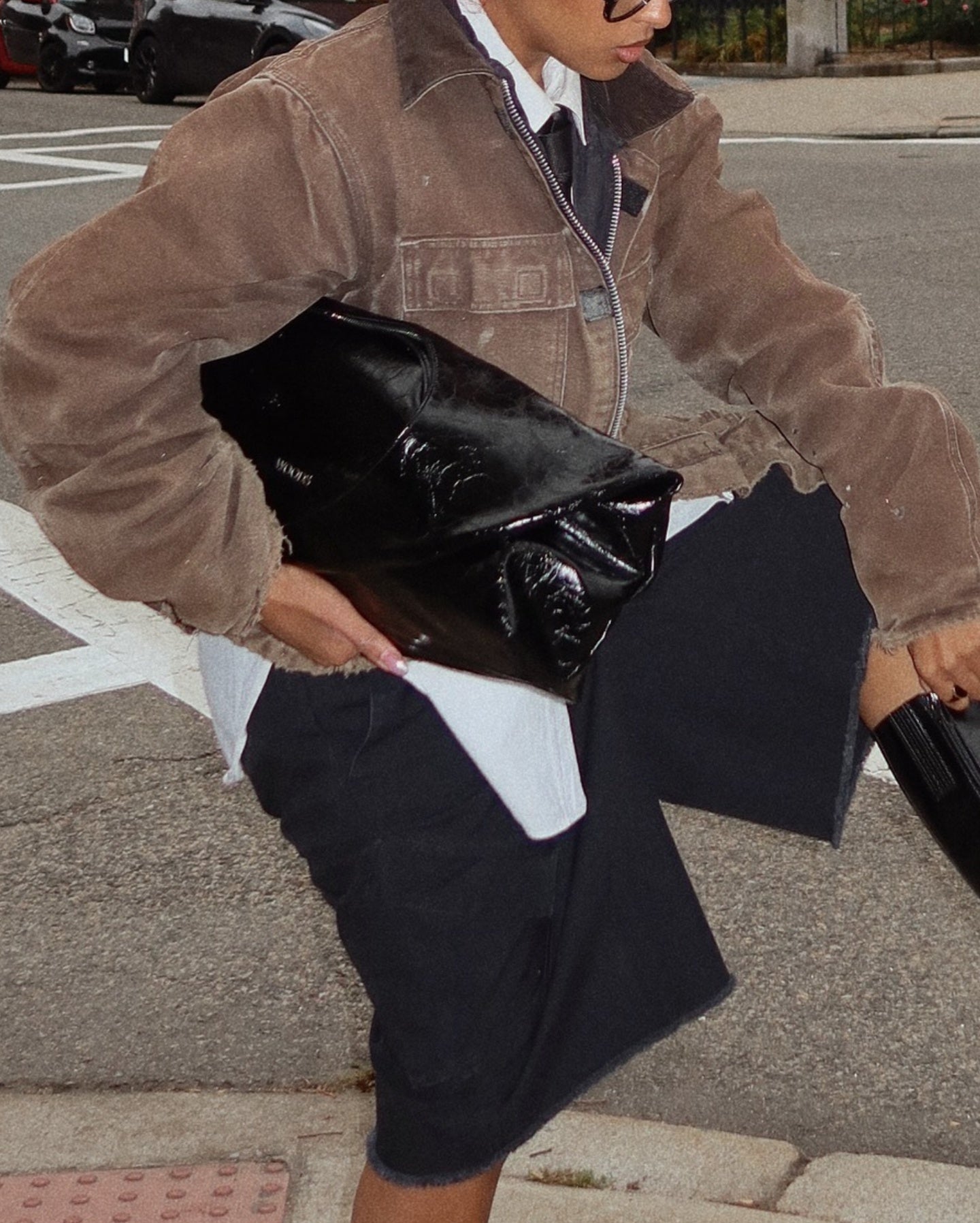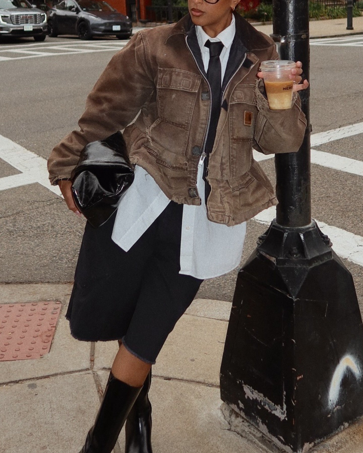 - Design & Style: Features a vintage washed brown denim exterior, oversized silhouette, distressed edges, and functional pockets. The design blends workwear-inspired details with a modern, slouchy fit, creating a versatile piece that’s perfect for layering and adding a rugged-chic touch to any outfit.