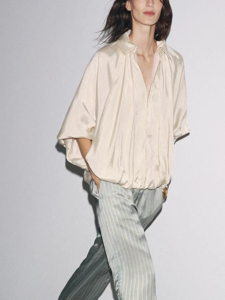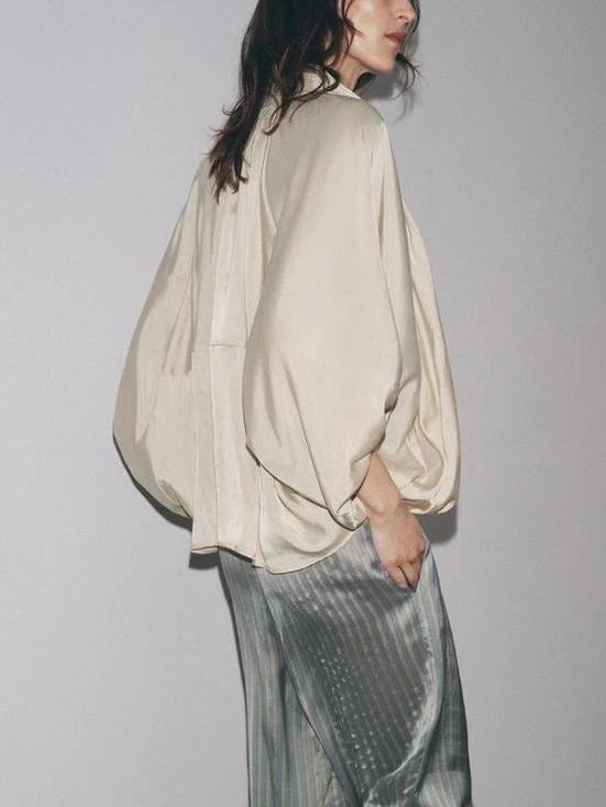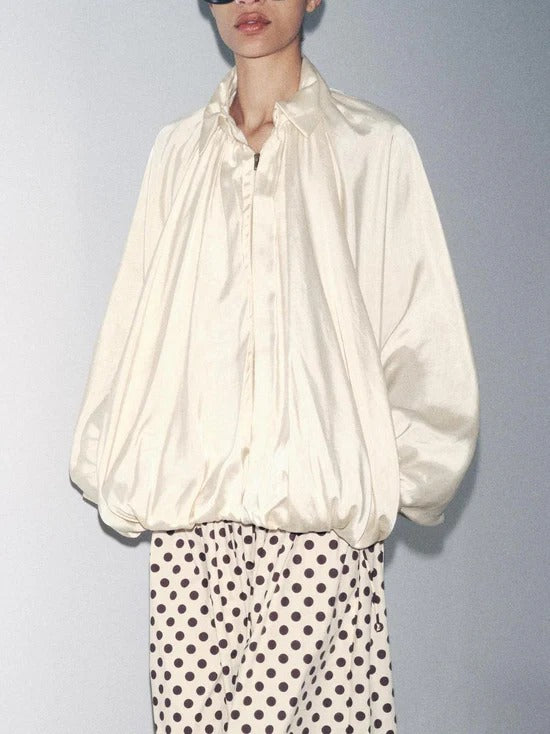 Womens Puffed Bomber Jacket Casual Batwing Sleeve Lapel Collar Zip Shirts Oversized Pleated Streetwear Jackets
