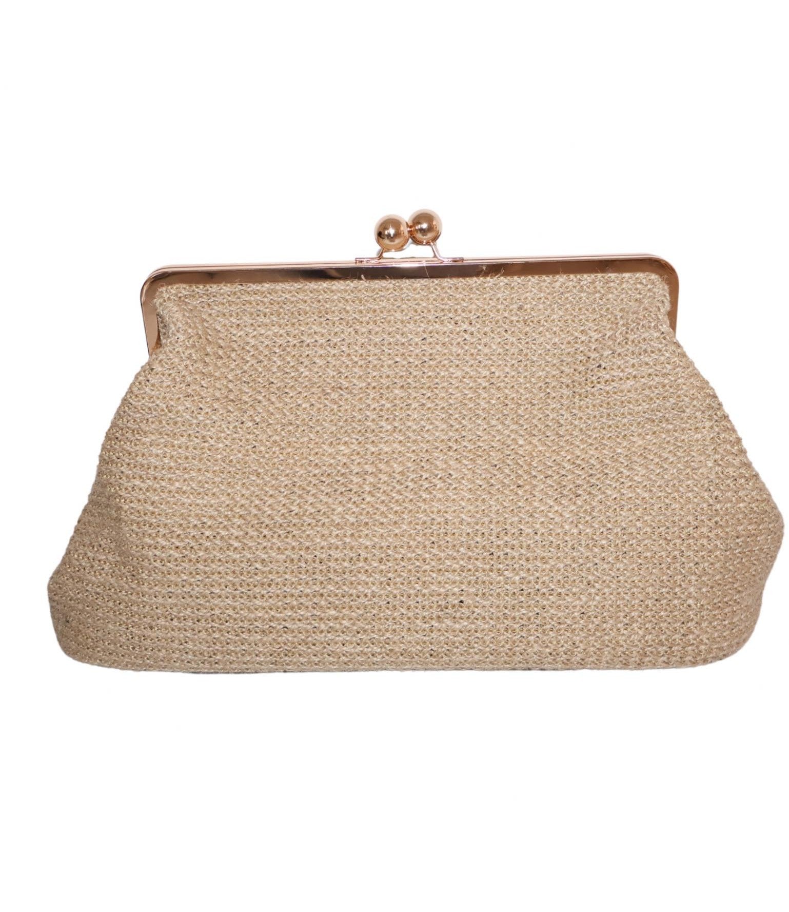 This woven bag features our signature kiss-lock design, inspired by vintage coin purses. It features an interior zippered pocket for easy organization and a detachable shoulder strap for crossbody wear.